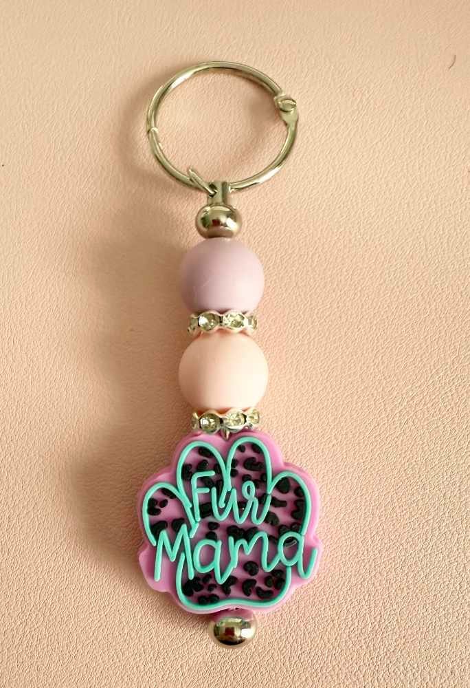 This is our “Fur Mama” dangler, with featuring a hot pink paw print focal bead. Accent beads in either pink or turquoise.